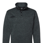 J-America Adult Traverse Snap Pullover. 9.75 ounce 100% polyester sweater knit. Herringbone texture througout. 4 snap placket. Chest pocket. Side gusset with welt pockets. Self fabric cuffs and waistband. Tear away label.